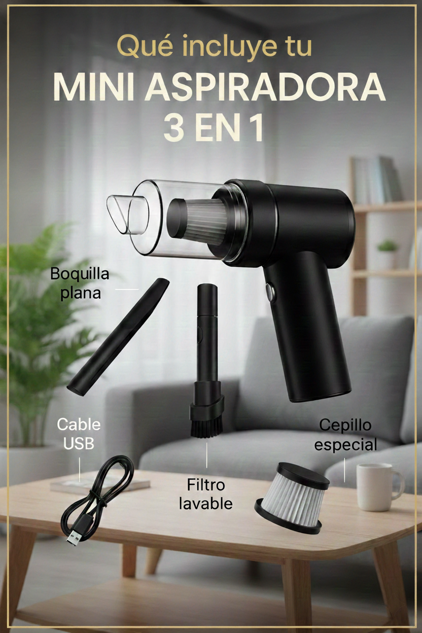 - Tipo: Mini aspiradora inalámbrica portátil